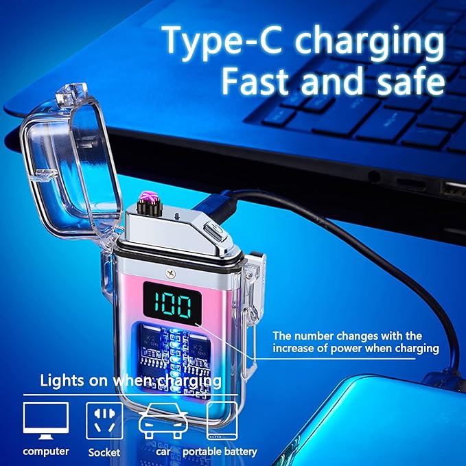 - ✅【Premium Rechargeable Lighter】▶ Lighter using Type-C charging interface, charging fast and safe. It supports the connection of mobile phone charger, car charger, notebook and charger bank to replenish power. The lighter is designed with LED digital display, which can not only check the usage of charging power but also check the number of times of use of the lighter (with each ignition as one). You don't need to worry about running out of power when you go out.