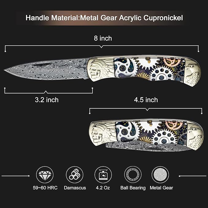 Damascus Pocket Knife Folding Knife, Tactical Camping Survival Knife, 3.2 inch Dream Gear, Best Pocket Kinfe for Camping Survival Fishing Hunting