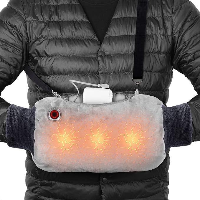 - 【Men Portable Charger Heated Muffs Hand Warmer】: battery operated heating pad with 10000 M-Ah rechargeable battery ensures the long-lasting, it can support 3-6hours,(65° Celcius 149 Fahrenheit can use 4hours). It doubles as a backup battery for your USB devices.