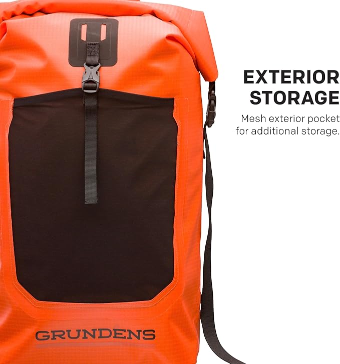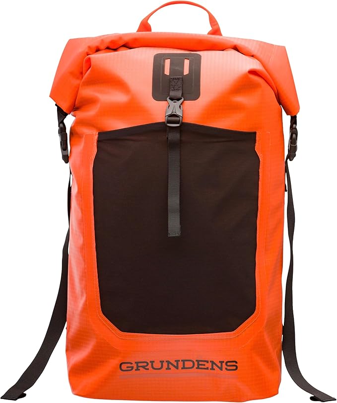 Grundéns Bootlegger Roll Top Backpack | Waterproof, 30L, Red Orange