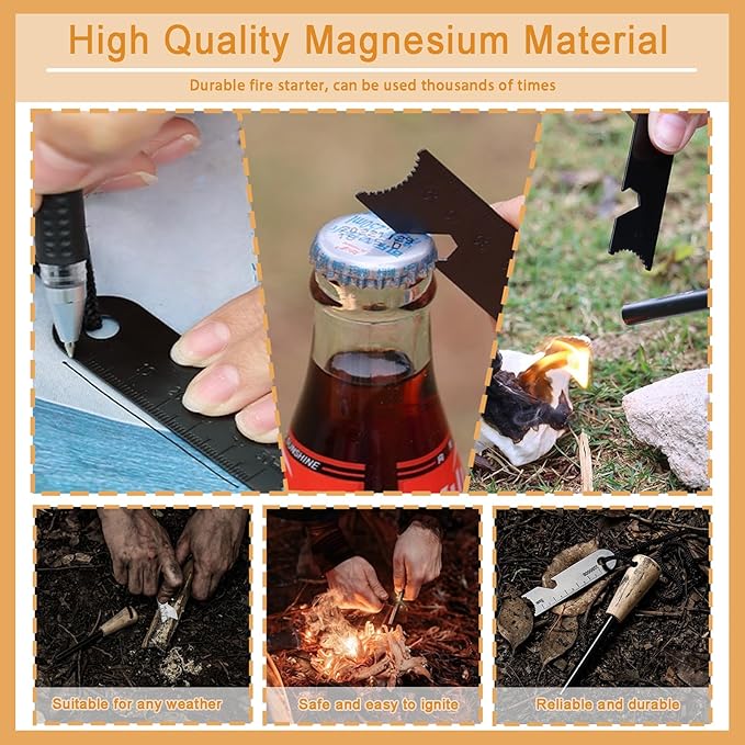 - RELIABLE AND DURABLE: Our fire starter crafted from high-quality ferrocerium, much more reliable than matches, these rods are built to last and provide reliable fire ignition even in adverse conditions, ensuring you're always prepared for outdoor adventures.