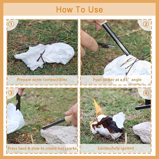 - COMPACT AND PORTABLE: Our fire starter kit is designed with convenience in mind. It’s easy to carry in your pocket, backpack or emergency survival kit, ensuring it's always within reach when you need it most.