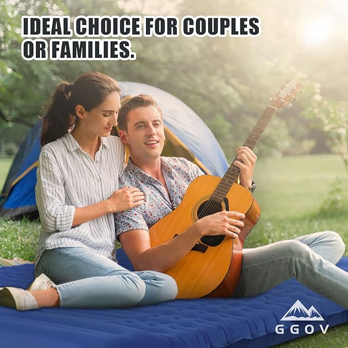 - 🏃♂【4.7 Inch Super Thick camping sleeping mat】- GGOV A sleeping bag pad measures 77" x 55" x 4.7" after inflated, super thick camping sleeping pads, even if you have 800 pounds, it doesn't matter, the independent space system design makes each space is Evenly filled with air, you will feel comfortable and safe, please enjoy life.