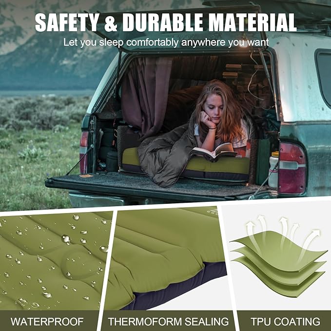 - 【Multipurpose】- Light, tough and ultra-compact make it perfect for outdoor use such as RV camping car camping hiking, backpacking glamping road tripping travel swim float the one person sleeping pad can also used as guest bed at home