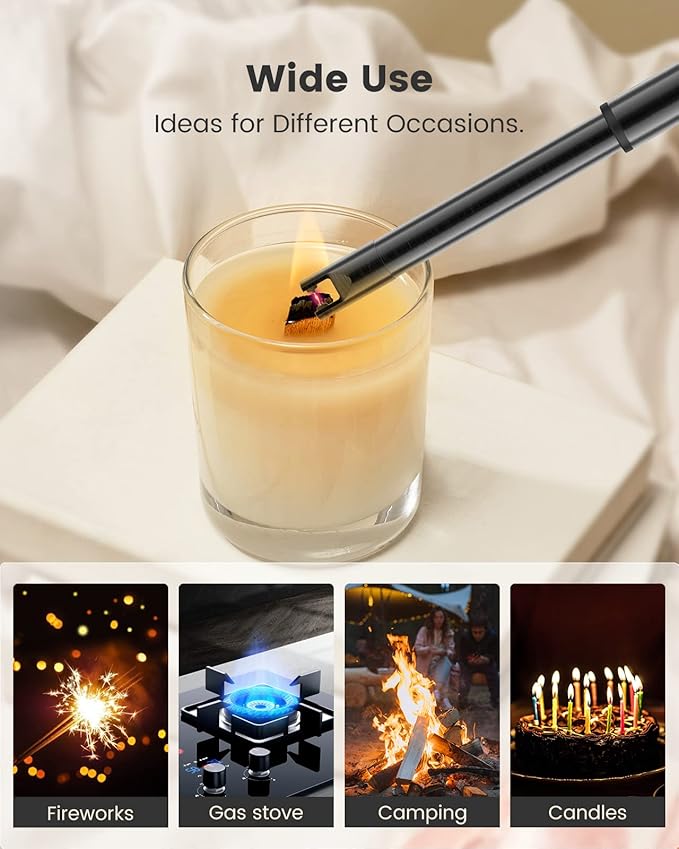 - 【Plasma ARC Electronic Lighter】 Our rechargeable candle lighter utilizes ARC technology to easily light your candles, fireplace, or stove. This USB candle lighter produces a steady arc, which is more stable than the traditional or butane lighters ignition