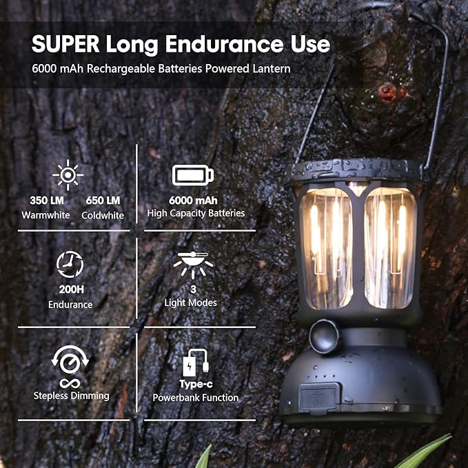 - Durable for Long Use - Our camping lantern is IPX4 level water-proof and has passed 1.5m anti-drop test.