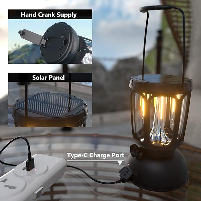 - Hand Crank/Solar/USB Powered - Our rechargeable lantern can be charged by USB cable/solar /hand crank so you don't need to purchase extra AA batteries.This more convenient and environmental friendly design makes it more suitable for modern life than traditional battery powered lanterns.