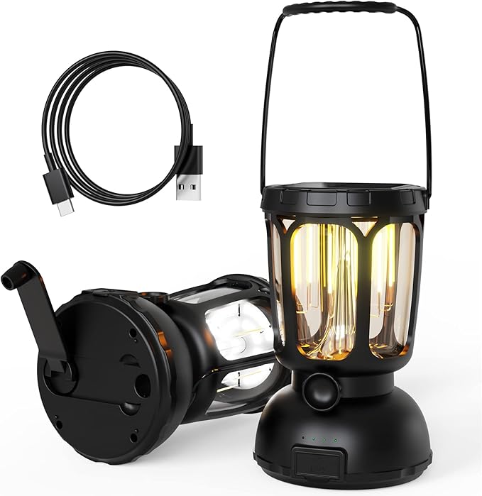 650LM LED Camping Lantern with 6000mAh 10-200hrs Battery Life, Hand Crank /Solar Powered /Type-C Rechargeable for Power Outages, Warm/Cold Light Stepless Dimmable 650 Lumen,(1 Pack)…