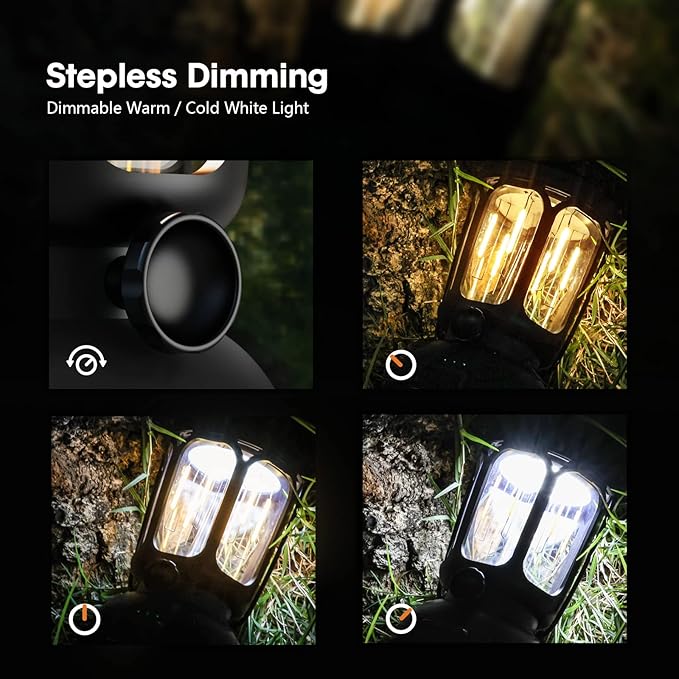 - 0-100% Stepless Dimmable - By rotating the knob clockwise, the LED lantern will change warm & soft light to cold & white light.