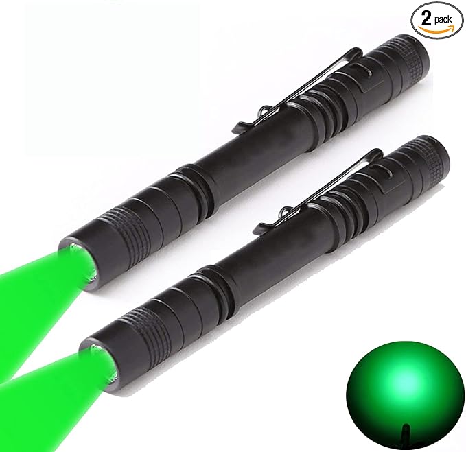 2 x Green Light Pen Type Penlight Flashlight One Mode Green Light LED Torch for Camping Hiking Fishing Hunting Animal Protecting Night Vision