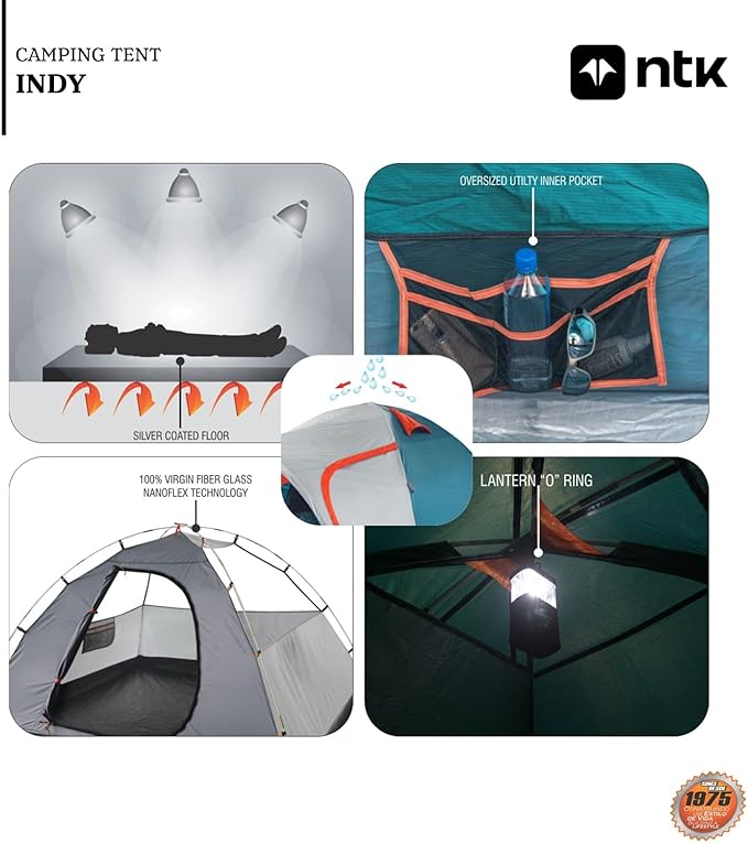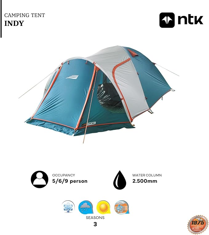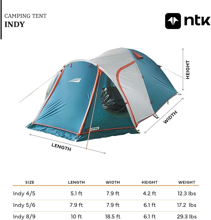 NTK Indy GT 4/6/8 Person Outdoor Tent for Camping | Extended Front & Canopy | 100% Waterproof Dome & Breathable Mesh | 3 Season Easy Setup Tent