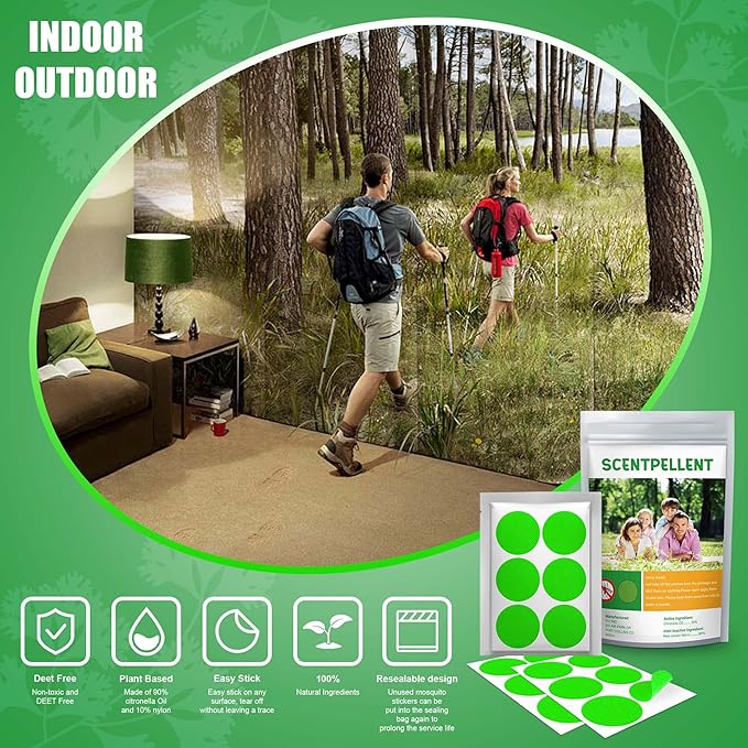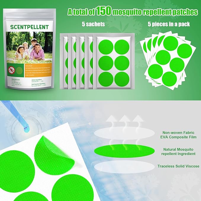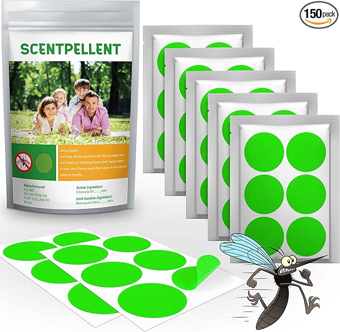 Scentpellent 150 Pack Mosquito Stickers for Kids and Adults, Deet Free Natural Citronella Mosquito Patches for Indoor Outdoor Traveling Camping Hiking