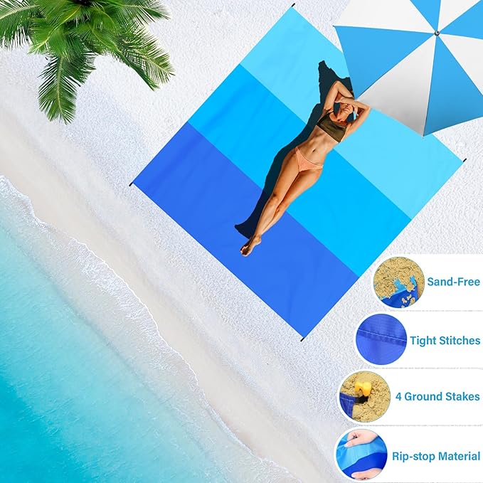 - 🏕️Beach Blanket Oversized:Good tear resistance,dry quickly.Also can be used as a rain shed,sunshade,tent,toddler crawl,emergency mat.Feel comfortable to lying down.Won't irritate your skin,better professional fabric sewing.