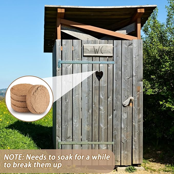 - Suitable for Composting: the coconut coir disc is suitable for standard size composting toilet cisterns, and the coconut shell is a good filling material for composting toilets; The coconut coir disc is expandable, which can help dry the stuff in the solid waste containers and create airflow, and it can also improve decomposition and neutralize odors