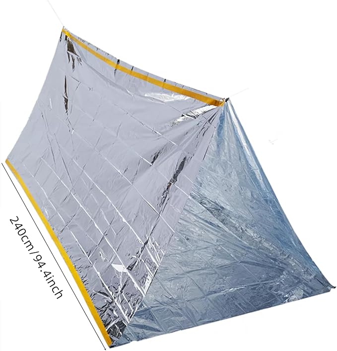 - Emergency tube tent: this camping tent come with 59 X 94.4inch/7.87' x 5' 2-person mylar thermal shelter, large size can support full body protection. Practical and convenience. It's a tube tent that comes with a "rope"/ridge line to run under the top so it will keep its shape