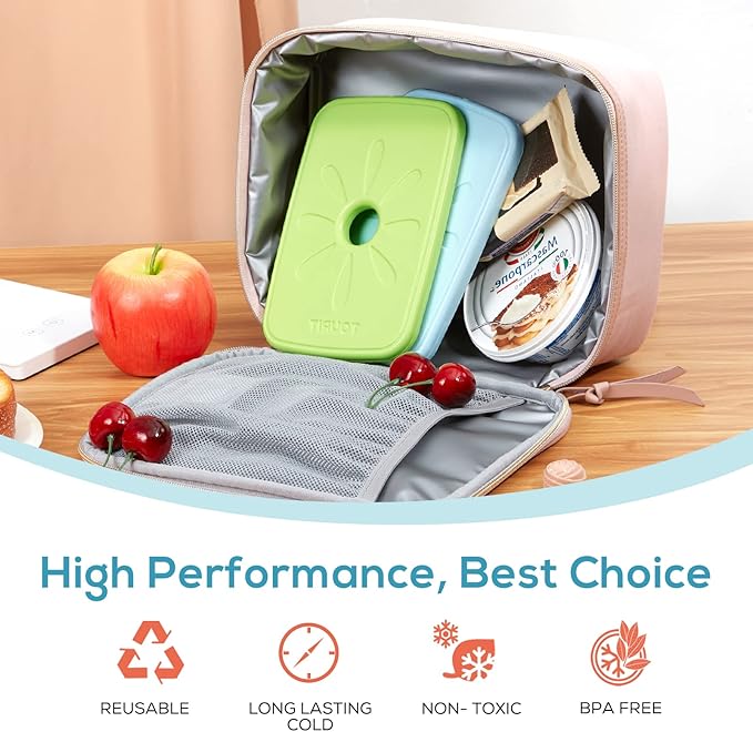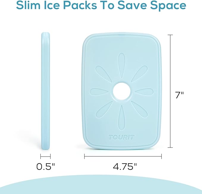 TOURIT Ice Packs for Lunch Boxes/Bags and Coolers, Lunch Box Cooler Ice Packs Reusable, Slim and Long Lasting Cool Pack for Work, Picnic or Camping