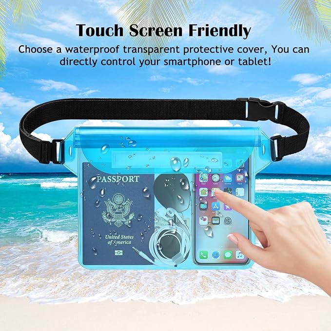 - Premium & Touch-friendly : The waterproof fanny packs for women is made of durable and soft PVC material, and the translucent water proof bag is touch screen friendly, you can watch video and check the message in the water activity.