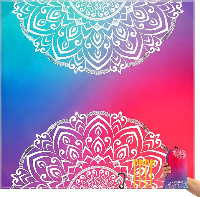 Beach Blanket Sandproof Extra Large Beach Mat Adults Waterproof Quick Drying Sand Free Mat Made by Premium Polyester with 4 Stakes & 4 Corner Pockets for Outdoor Travel Camping Hiking