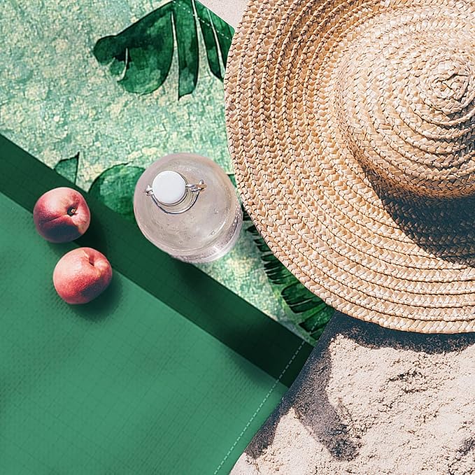- 🍃【EYE-CATCHING LEAVES BEACH MAT】: At 7 x 7 feet, the blanket mat offers 49 square feet of sand-free space, a leaf pattern on the beach blanket is chic and unique, providing plenty of room for all your beach gear and family members.