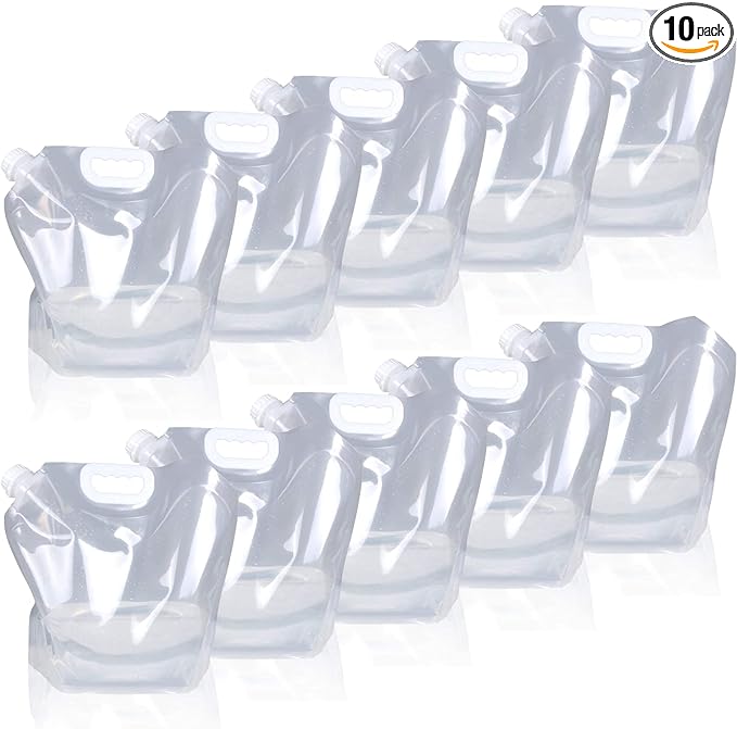 1.3 Gallon /2.6 Gallon Collapsible Water Container Bag, BPA Free Food Grade Clear Plastic Storage Jug for Sport Camping Riding Mountaineer,Freezable,Food Grade (2.6 Gal/10L-10-pack)