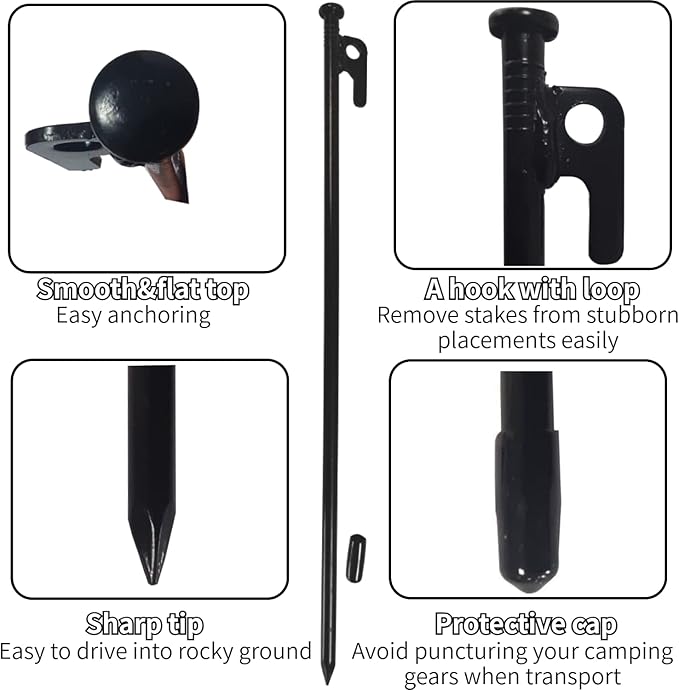 - PACKING INCLUDE: 6 PCS black tent stakes with tip small protective casings.