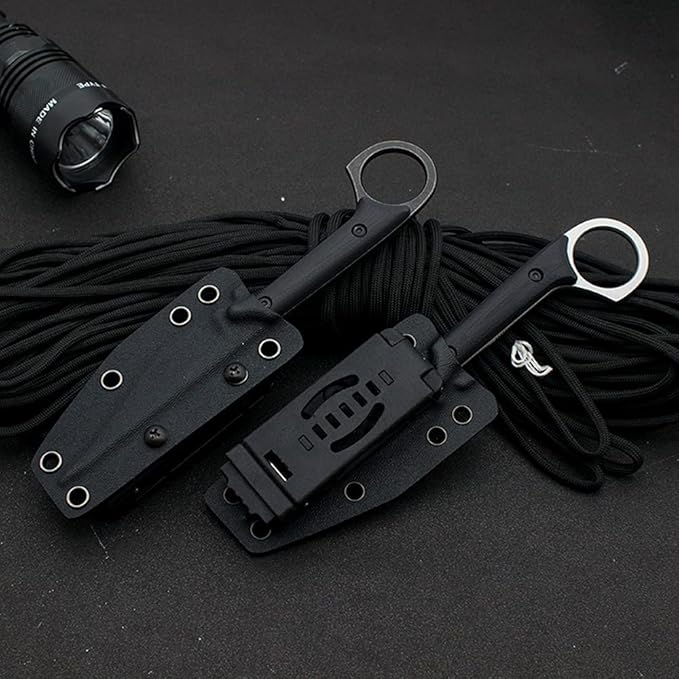 - Fixed Blade Knife with Kydex sheath: The best outdoor camping hiking knife you are looking for. Multiple carrying methods, lanyard hole and high-strength lightweight kydex material sheath for easy portability. The end of handle can be multi-purpose such as glass breaker .