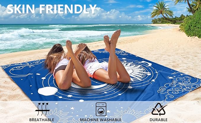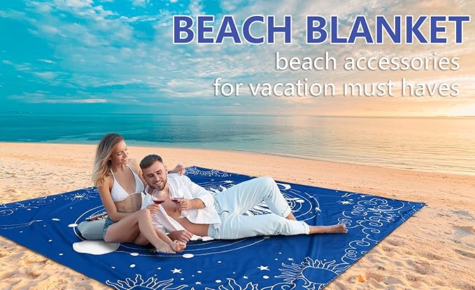 Beach Blanket Waterproof Sandproof Beach Mat 79" X 83" /10'x9'for 2-8 Adults Quick Drying Outdoor Picnic Mat Beach Accessories for Travel, Camping, Hiking