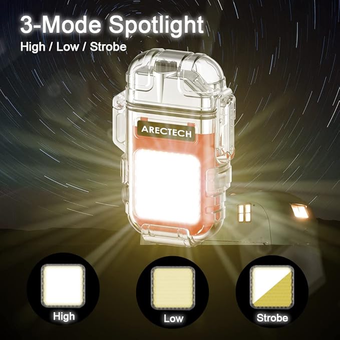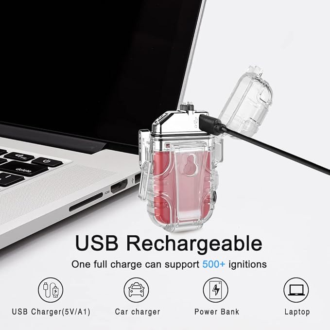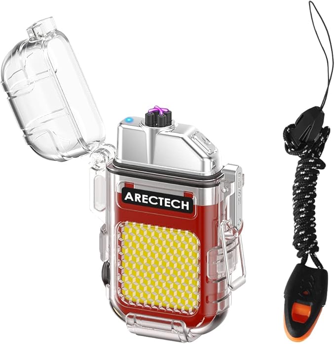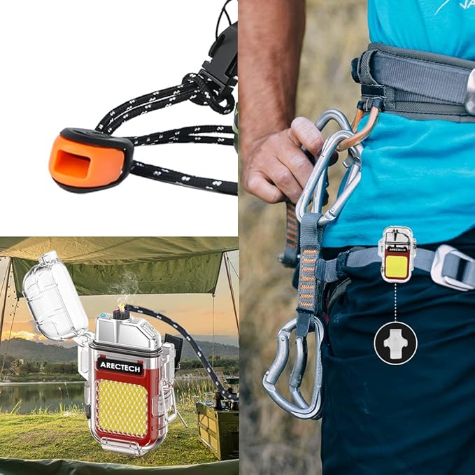 - 【Weatherproof Arc Lighter】This design makes it work even in heavy winds.Windproof and flameless,usb rechargeable arc lighter. It is a perfect outdoor lighter,camping fire starter tool,an emergency fire starter tool,edc camping survival tactical gear and more.