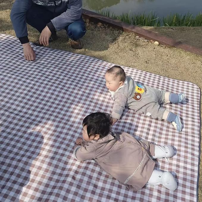 - PREMIUM & WATERPROOF】: Our mat is made of high-quality oxford fabric, non-toxic, light-weight and comfortable. Cute gingham blanket with white and tan checkers looks great in photos, on grass or sand. The print is elegent and creates a unique sense of picnic fashion. It is your best companion for daily life and outdoor life! Also a gift to your family.