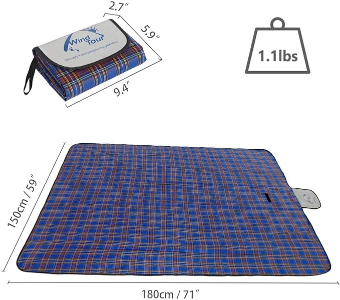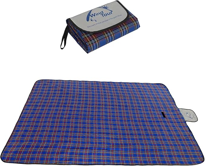 Wind Tour Family Outdoor Waterproof Durable Picnic Blankets with Carry Strap,Foldable 50×70.9 inch Sandproof Picnic Floor Mat for Kids Playground Camping Park Hiking Grass Travelling (1, Blue)