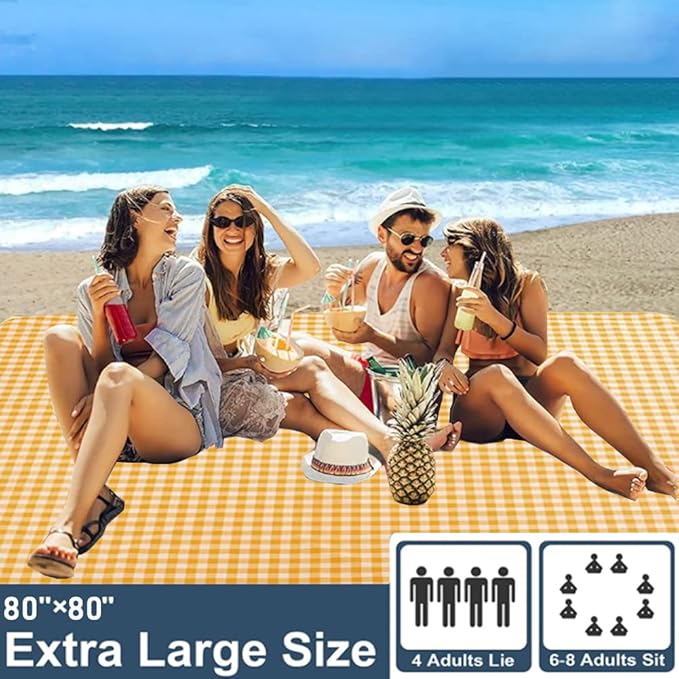 Extra Large 80"x 80" Beach Blanket, Outdoor Picnic Blankets, Waterproof Sandproof Portable Blankets, Foldable and Lightweight for Spring Summer Camping, Beach, Park