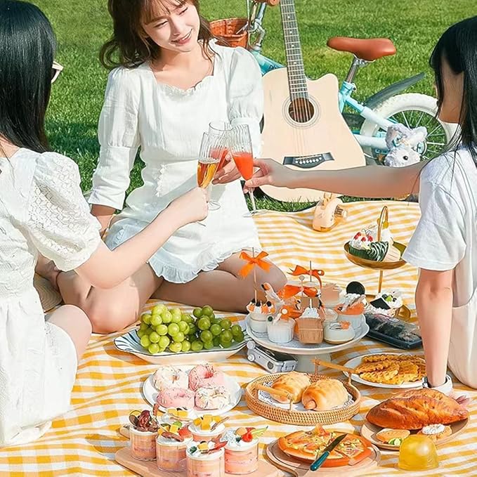 - EASY TO GO:With the design of velcro and integrated handle, it will not take too much space and effort, you can easily carry it anywhere! Cute gingham blanket with white and tan checkers looks great in photos, on grass or sand.