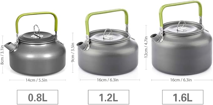 Lixada Camping Kettle 0.8L/1.2L/1.6L for Boiling Water, Coffee Pot Tea Kettle Aluminum Alloy Teapot with Silicon Handle Carry Bag for Hiking Outdoor Picnic