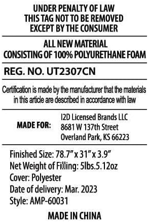 - Product Dimensions : 78.7"L x 31"W x 3.9"Th