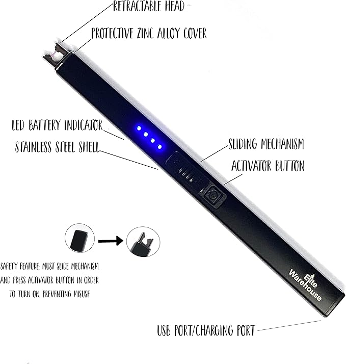 Electric Candle Lighter by Elitewarehouse, Rechargable Flameless Windproof Lighter for Candles Cooking BBQ Outdoor Activities Camping and More (Gold)