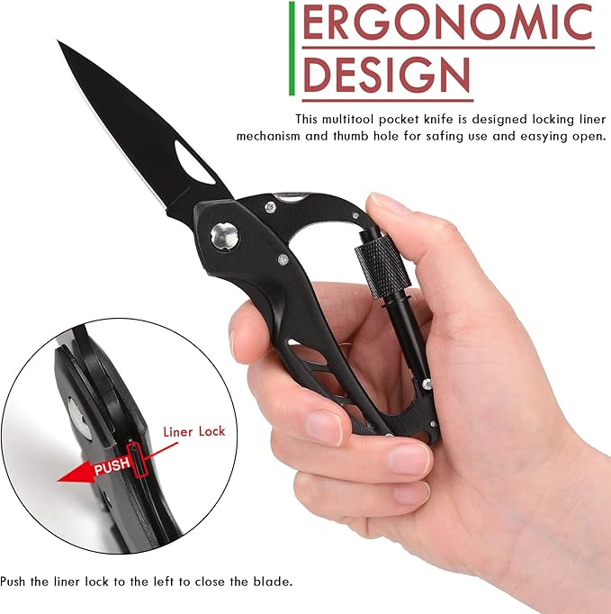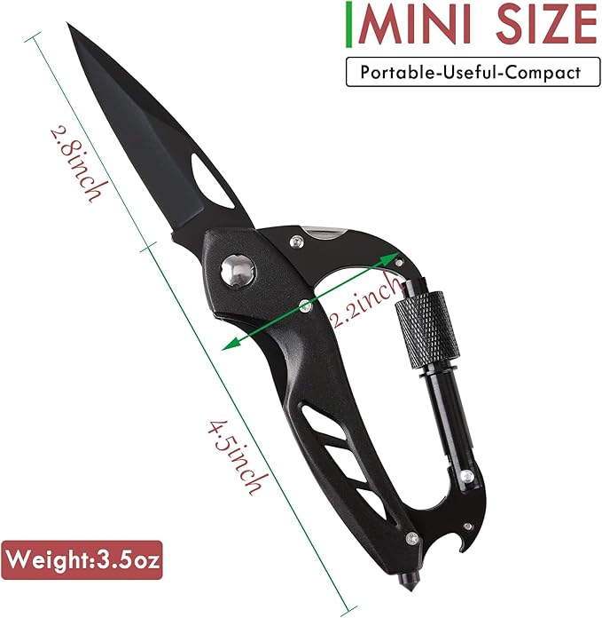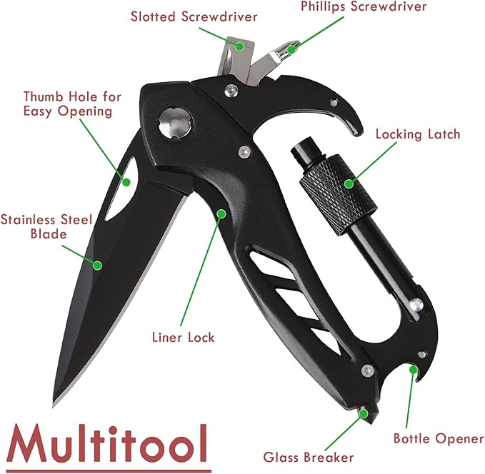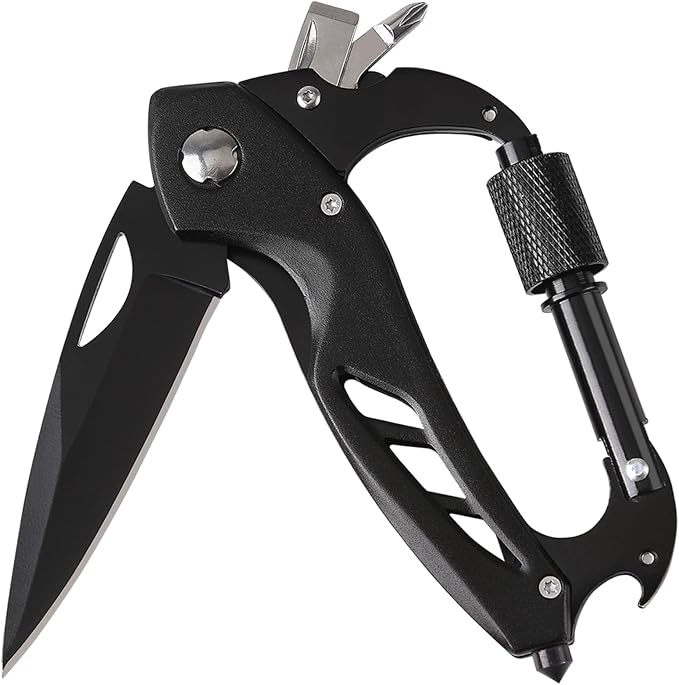 Multitool Carabiner with Folding Pocket Knife,Edc Carabiner Keychain with Bottle Opener, Window Breaker and Screwdriver,Survival Gear for Outdoor Camping Hiking