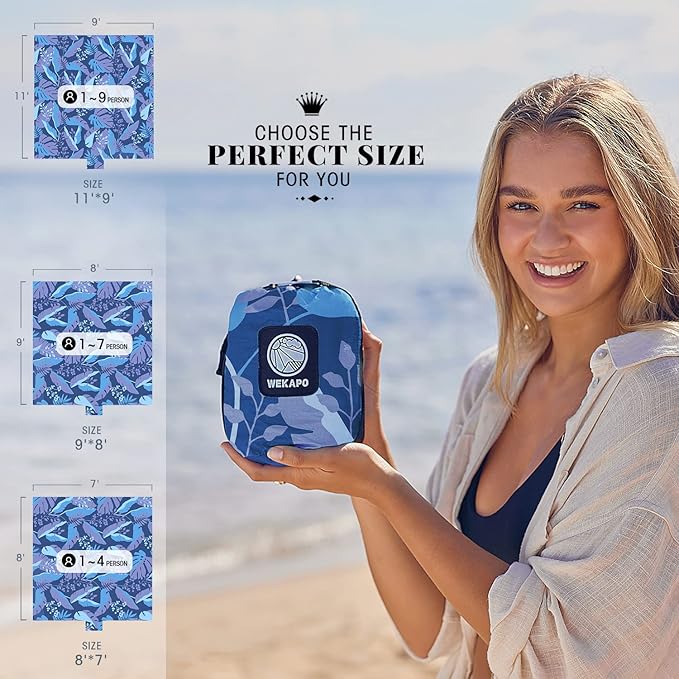 WEKAPO Beach Blanket Waterproof Sandproof Oversized, Extra Large Beach Mat Sand Free, Lightweight & Compact Sand Free Mat with 6 Stakes & 4 Corner Pockets