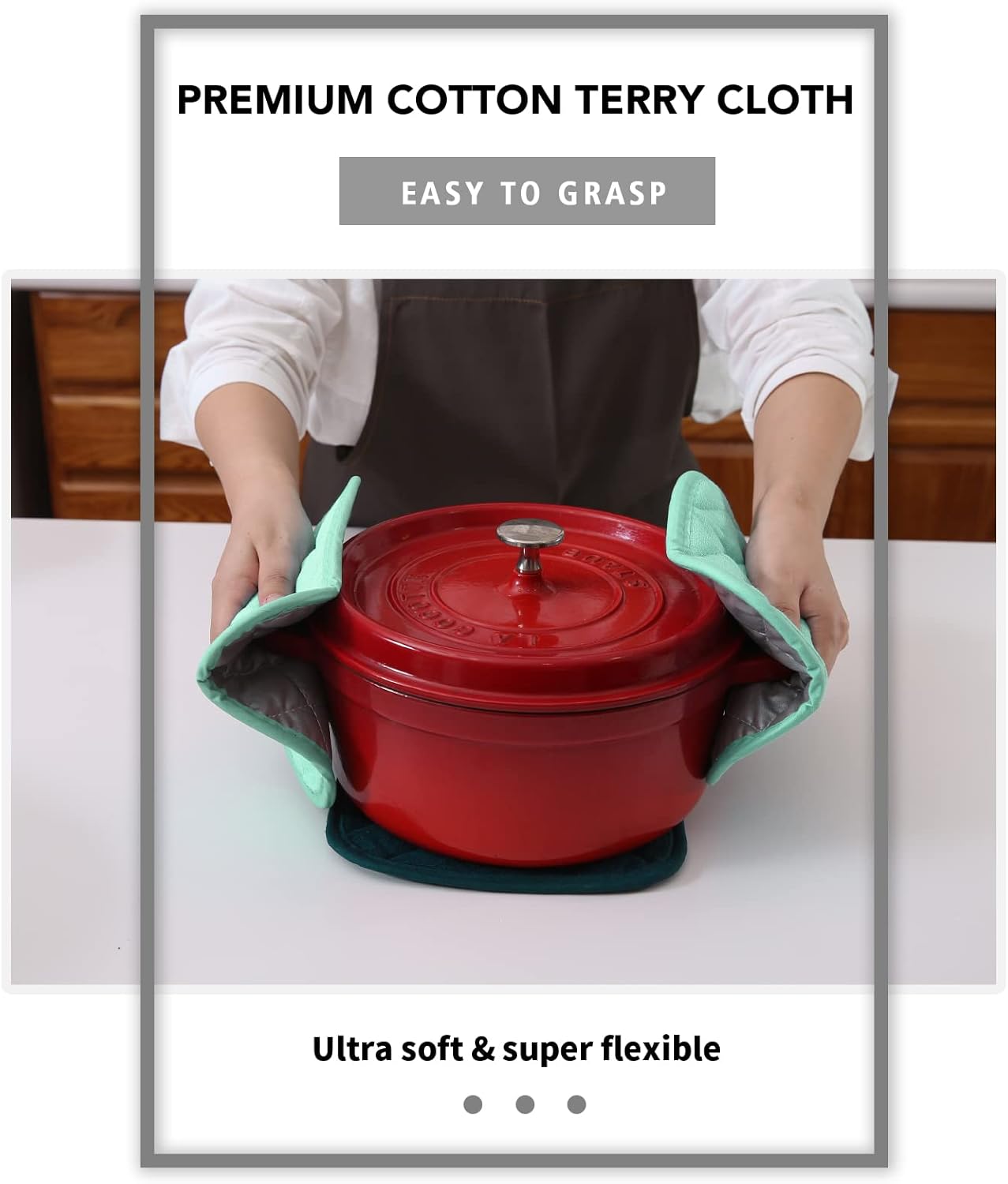 Joyhalo 4 Pack Pot Holders for Kitchen,Cotton Oven Holder with Great Heat Resistance,Non Slip Hot Pads for Kitchen Clearance, Aqua