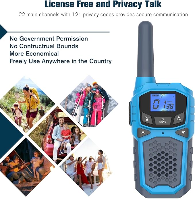 - 【Easy to Use】: Simple push-to-talk operation and hands-free communication(voice activation(VOX)talking )to relax your hands, send your voice without pressing any button.The lock Keypad function keeps your kids from pressing keys randomly, to enhance the fun of parent-child interaction. It is helpful in outside adventures, hiking, camping, road trip, cruise ship, riding and other different activities