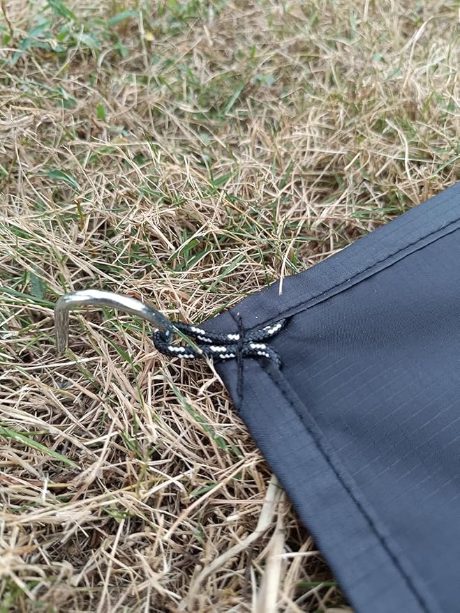 - High-quality Fabric & Durable -in addition to the above features of outdoor use, our fabric is softer and skin-friendly, no plastic feeling, and less noise during use, suitable for adults and kids. There are pockets at the 4 corners, and the loops are made of paracords with reinforced sewing, making this outdoor pocket blanket stronger and more durable, and can resist various outdoor bad weather. (4 metal stakes included)
