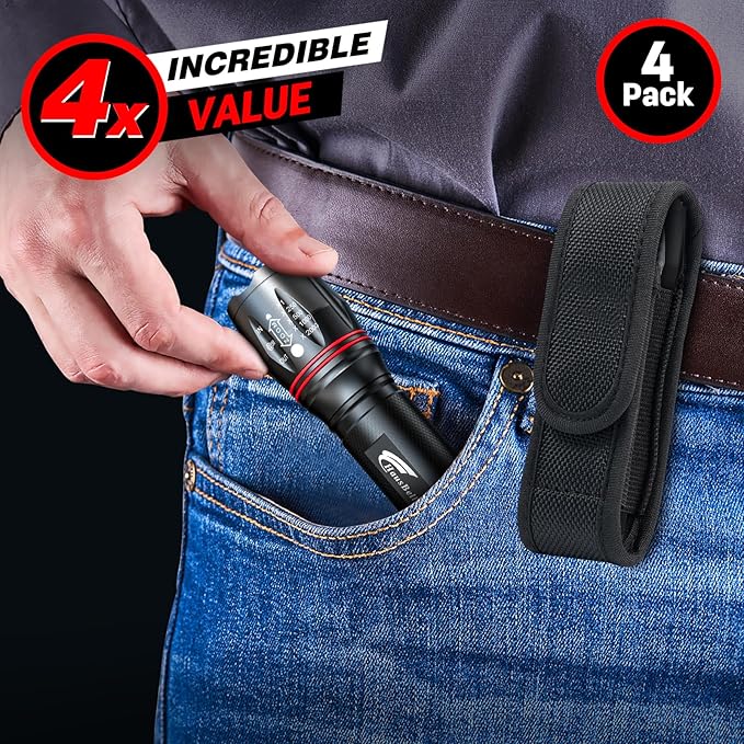 - Items Included: This high-lumen flashlight package includes T8 LED Tactical Flashlights*4, AAA Battery Holders*4, AAA Batteries*12, Hand Straps*4, all in one package