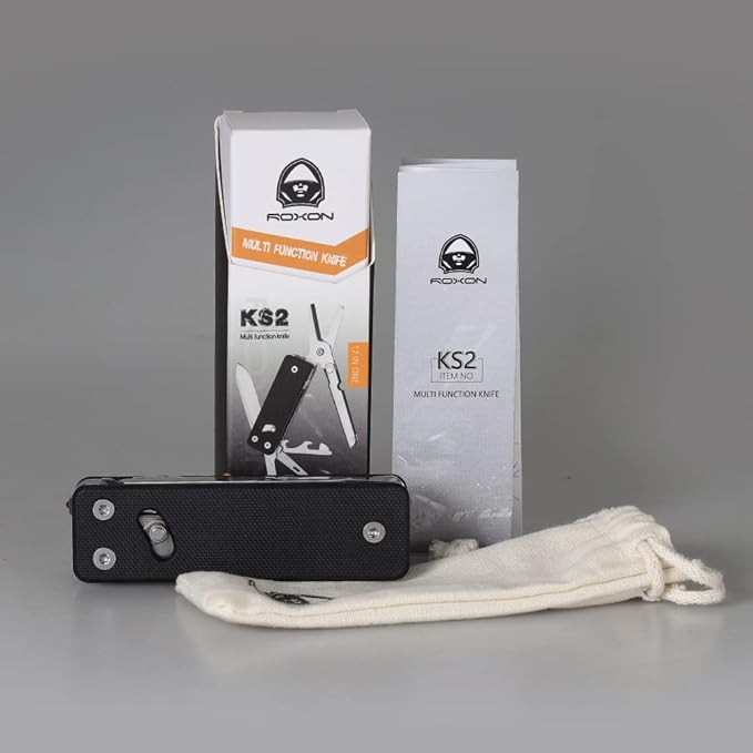 ROXON KS2 13 in 1 Mini Multi Tool function pocket knife with big scissor, G10 handle and Pocket clip, good for Camping/Backpacking/Emergencies/EDC Multitool (5cr15Mov Blade)