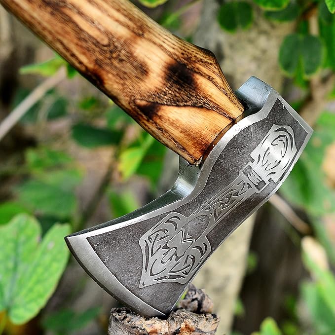 - We use a method of etching metal in salt water to put drawings on the axe hatchet so it will last for years. the perfect gift to pass on. a gift for dad father husband boyfriend or brother, when setting up camp outside and hiking, our battle axe will prove to be useful, simple to cut wood, and light the oven.