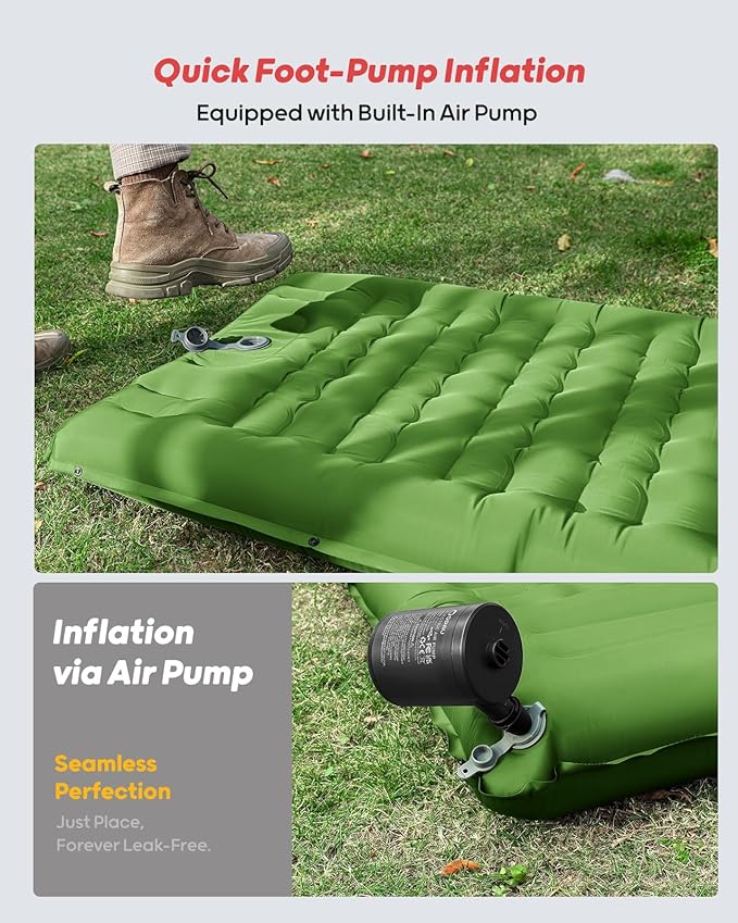 QPAU Sleeping Pad for Camping, Camping Mattress, 76''X26'', 4.7'' Extra-Thick Enhanced Support, with Built-in Foot Pump, for Camping, Hiking - Airpad, Backpacking and Home, (Green)