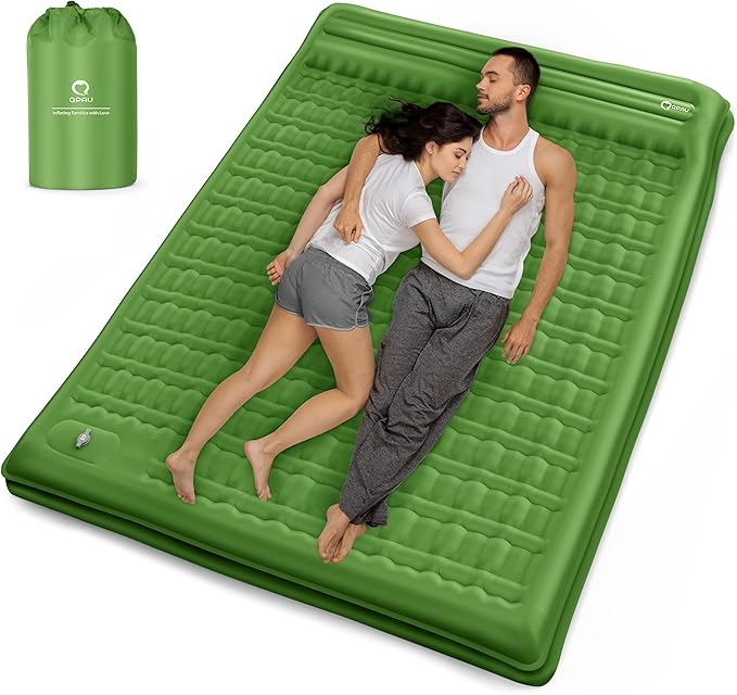 QPAU Camping Sleeping Pad, 2 Person Camping Mat, Enhanced Support for Healthy Comfort Sleep, with Built-in Foot Pump, 4.7 Inch Durable Sleeping Mattress, Hiking, Backpacking and Home - Green-1