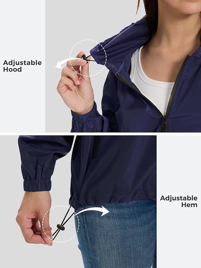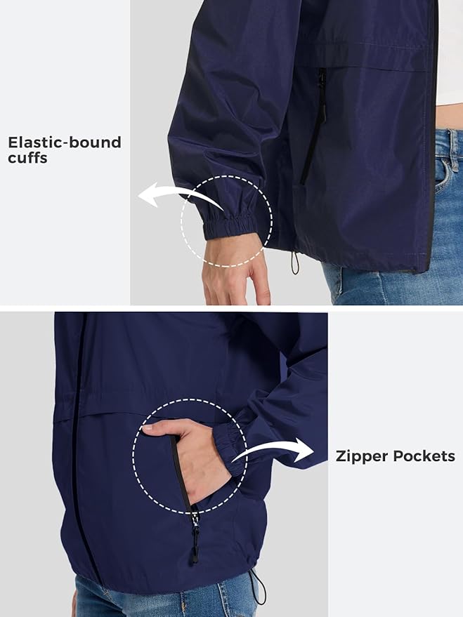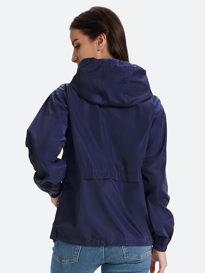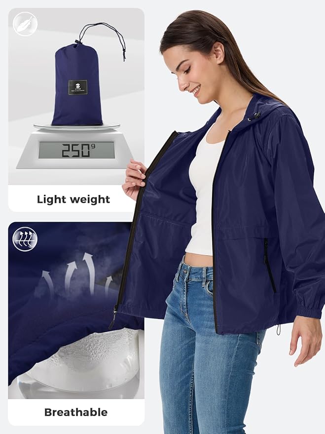 SaphiRose Lightweight Rain Jacket Women Waterproof Breathable Raincoat Packable Hooded Windbreaker
