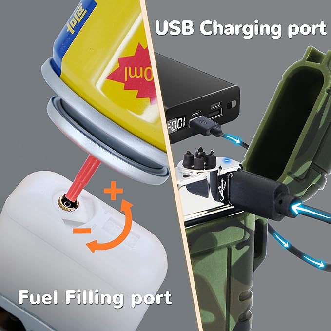 - WATERPROOF & WINDPROOF - These 2 lighters are also built with metal-ring sealed cover and locking clasp. IP56 Waterproof System allows them work well in rainy day and windy day. The arc lighter's flameless design and the blue jet flame lighter both have a function of wind resistance. A necessary tactical gear for the outdoors