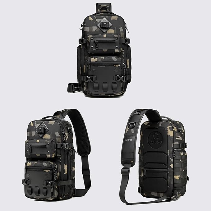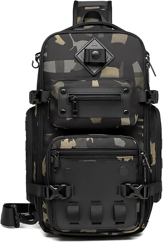 OZUKO Tactical Backpack Chest Sling Bags for Men, Waterproof Crossbody Shoulder Daypack for Outdoor Walking Hiking Trekking (Camo)