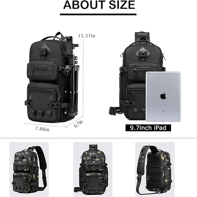- ✔ SPECIAL DESIGN: Tactical Backpack Chest Sling Bags with Shoulder slots to store popular items such as paper towels, cards and sunglasses. Waterproof messenger Crossbody Shoulder Daypack with the side has a fixed buckle, can be used to fix the camera frame, selfie stick, more functions can be developed by the buyer. The way to open one strap backpack adopts 90° open suitcase design, which makes it more convenient to place and take things.