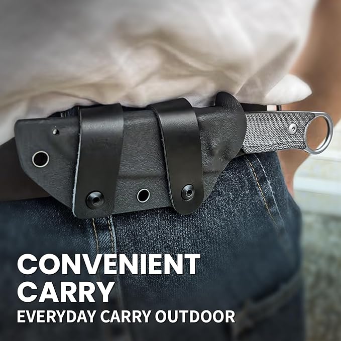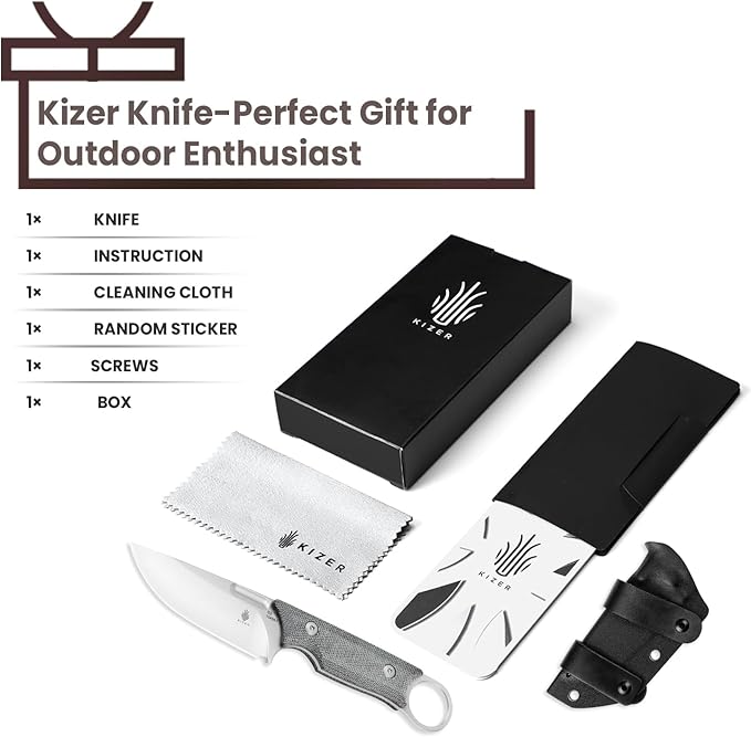 - Easy Portability: The Kizer fixed blade knife comes with a durable sheath that securely holds the knife in place, ensuring its proper storage and protection. The wide lanyard hole allows for convenient carrying, whether for outdoor adventures or indoor use.